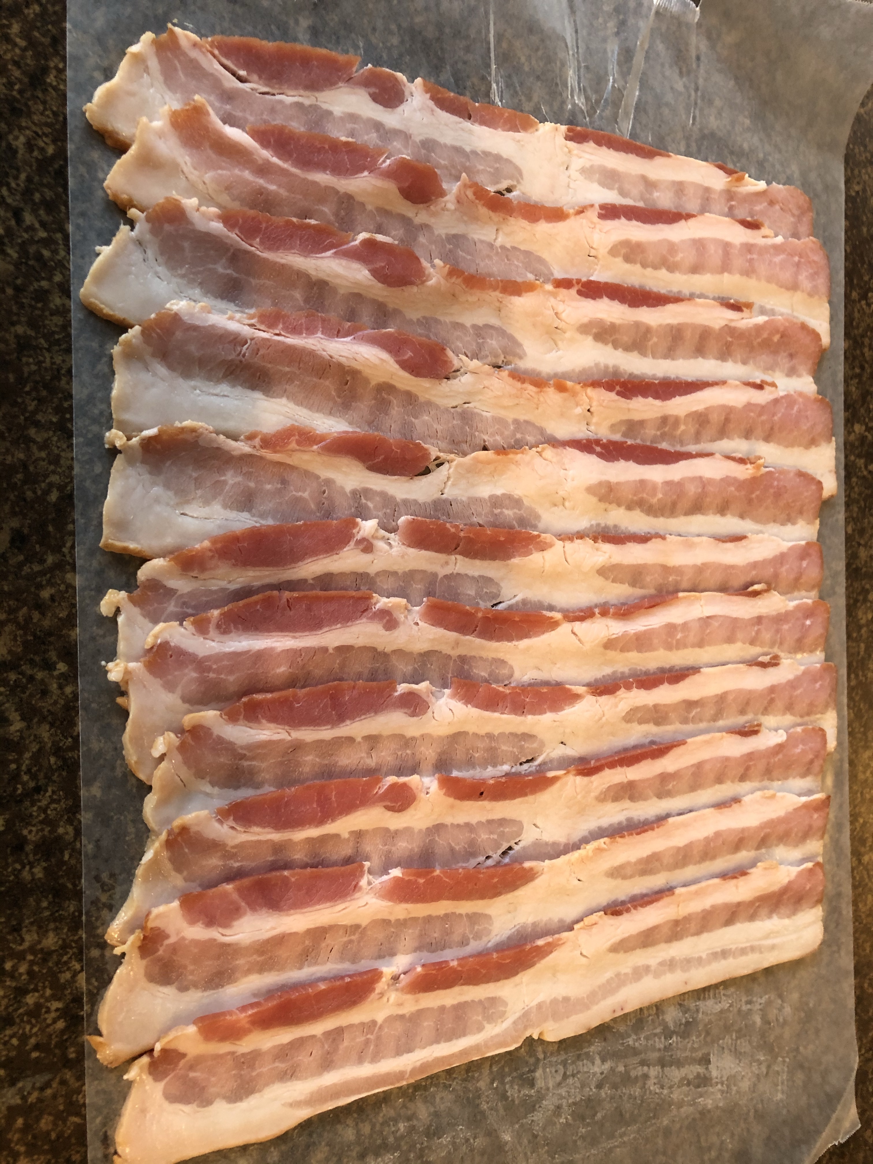 3) Lay slices of bacon on wax paper (pictures below) slightly overlapping.