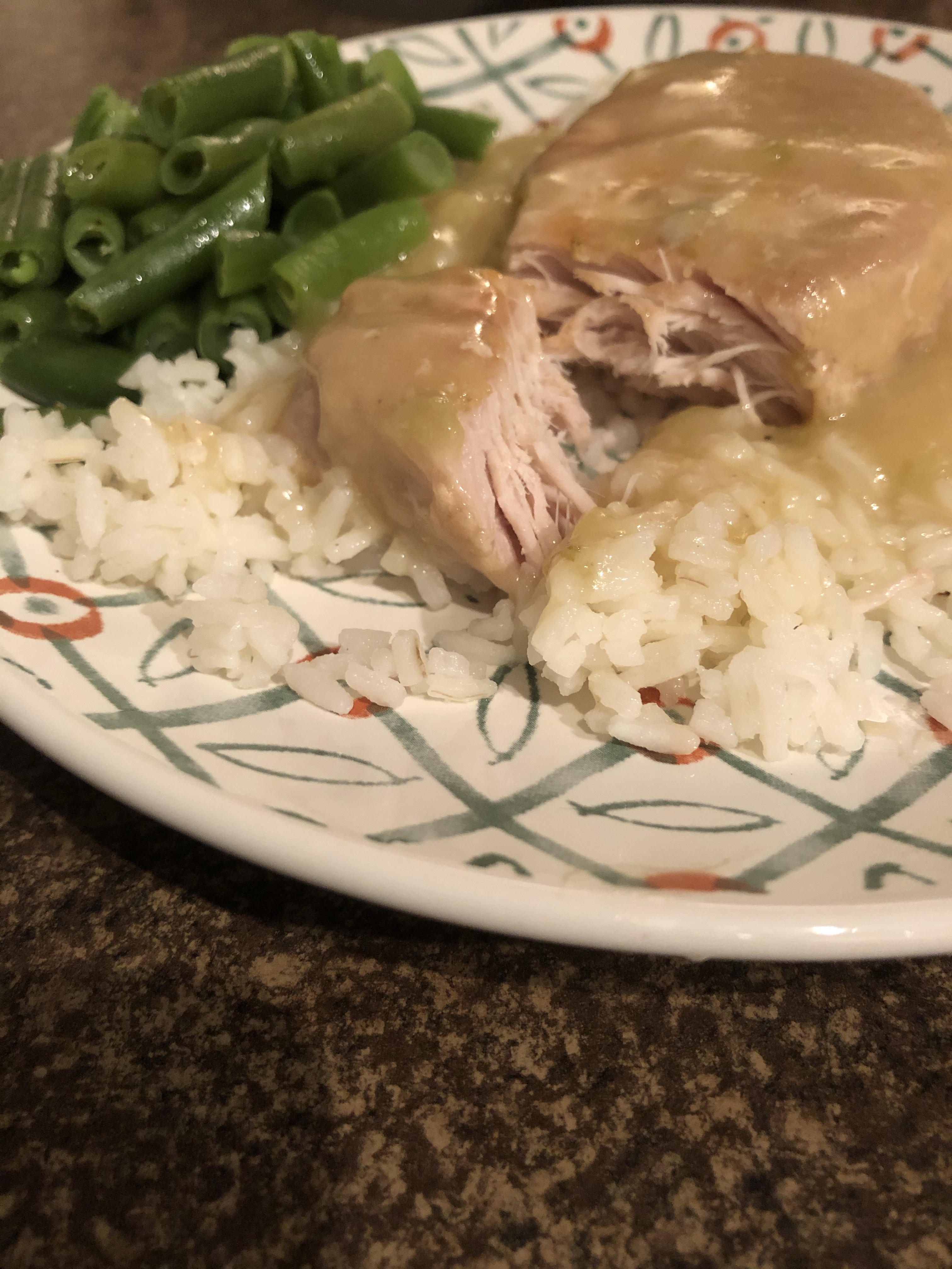 What, oh what, will pair with this rockstar entree as a side dish? These come out of the oven fall-apart-tender and covered in a delicious (note: I did not say healthy…but I will reiterate, delicious) gravy. So I would recommend serving this dish with either some creamy mashed potatoes or fluffy rice so you can serve the extra gravy on top of the side dish as well. Most any type of vegetable will work well with this. We grew up eating it mostly with steamed corn because my parents grew sweet corn during the summer and we always had extra that mom would freeze for another day. There’s just something about having fresh sweet corn during winter that makes it taste even better! Nowadays I let my daughter have dealer’s choice on most of our veggies so we have enjoyed this dish with peas, green beans, edamame, broccoli/cauliflower/carrots, etc. She’s a huge fan of vegetables in case you can’t tell 😉 Since this is clearly not a diet-friendly dish, you might as well add in some buttery dinner rolls or bread to soak up the last bits of flavor from your plate 😉